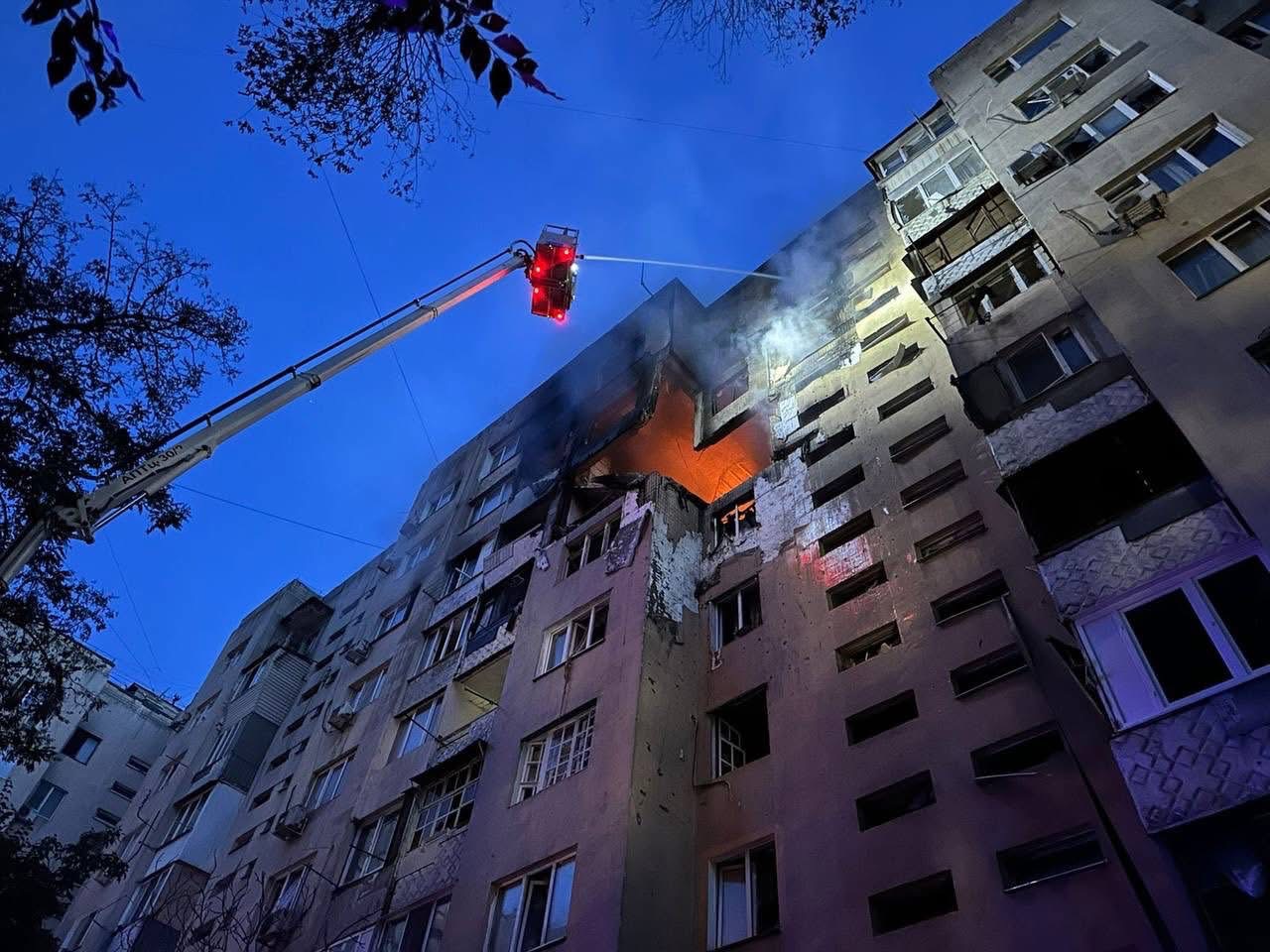 Атака спричинила пошкодження багатоповерхового житлового будинку та об’єктів цивільної інфраструктури. У квартирах містян спалахнули пожежі, які оперативно загасили одеські рятувальники.