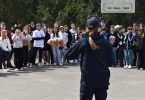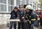 Так, захід розпочався загальною евакуацією гімназії: після відповідного звукового сповіщення, вчителі та діти евакуювалися до точки збору та доповіли про кількість присутніх. Там на них чекали вогнеборці, які поділилися планом заходу, а також – провели навчання щодо підозрілих та вибухонебезпечних предметів.