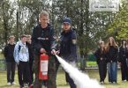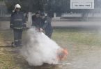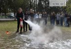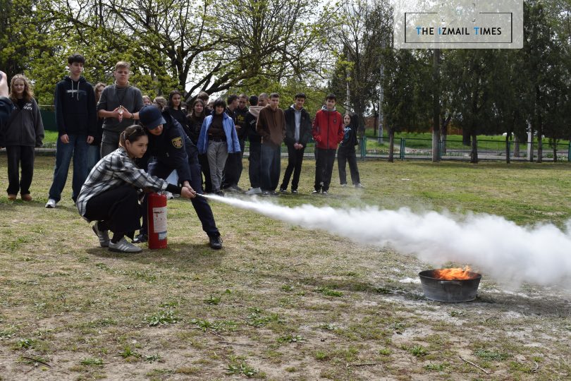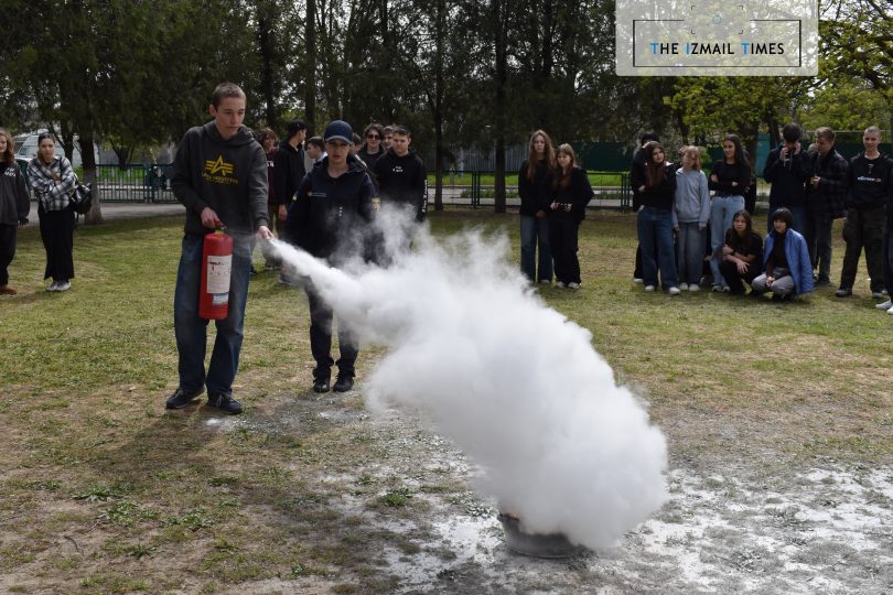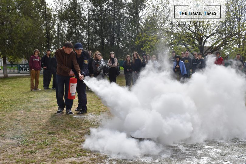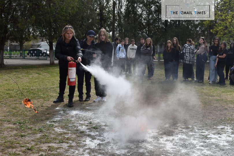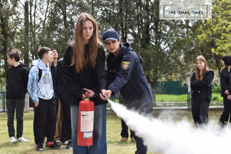 Паралельно з цим, на території гімназії відбулися навчання з використання вогнегасника та ліквідації пожежі на первинній стадії: фахівці ДСНС роз’яснили, коли та як використовувати вогнегасник, а також – на практиці запропонували кожному ним скористатися.