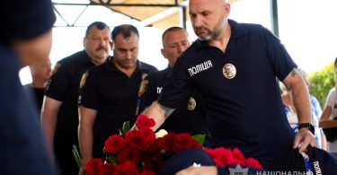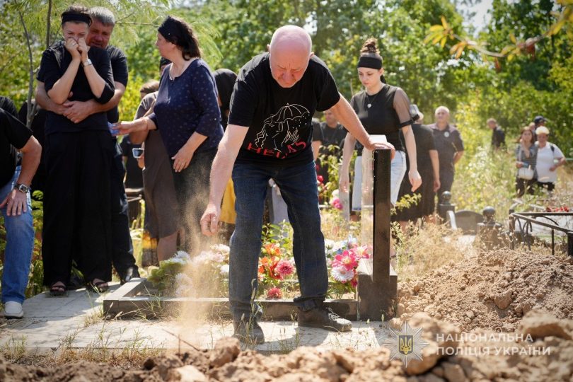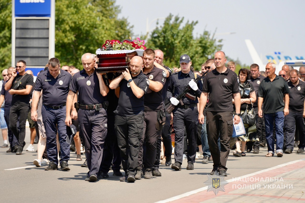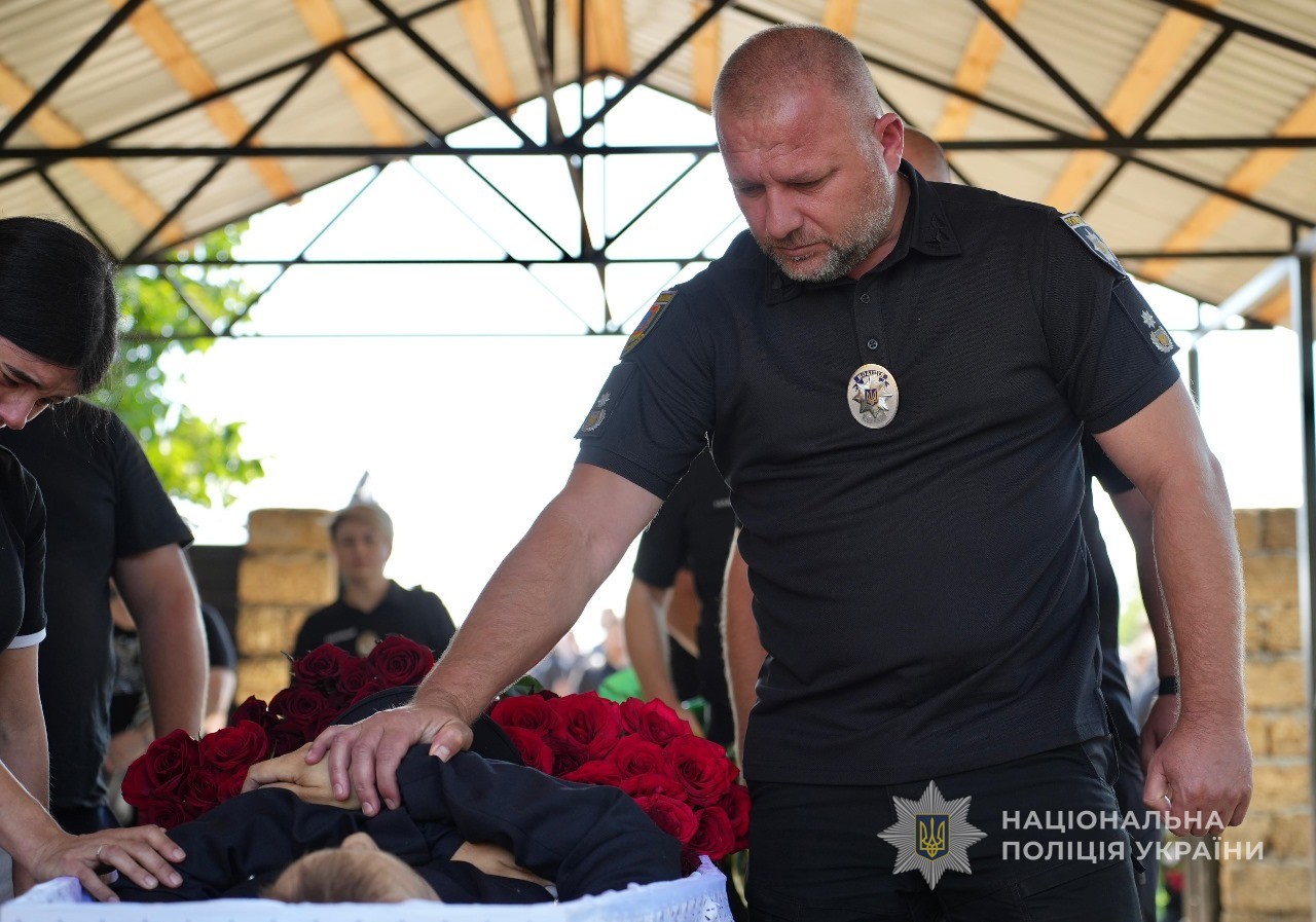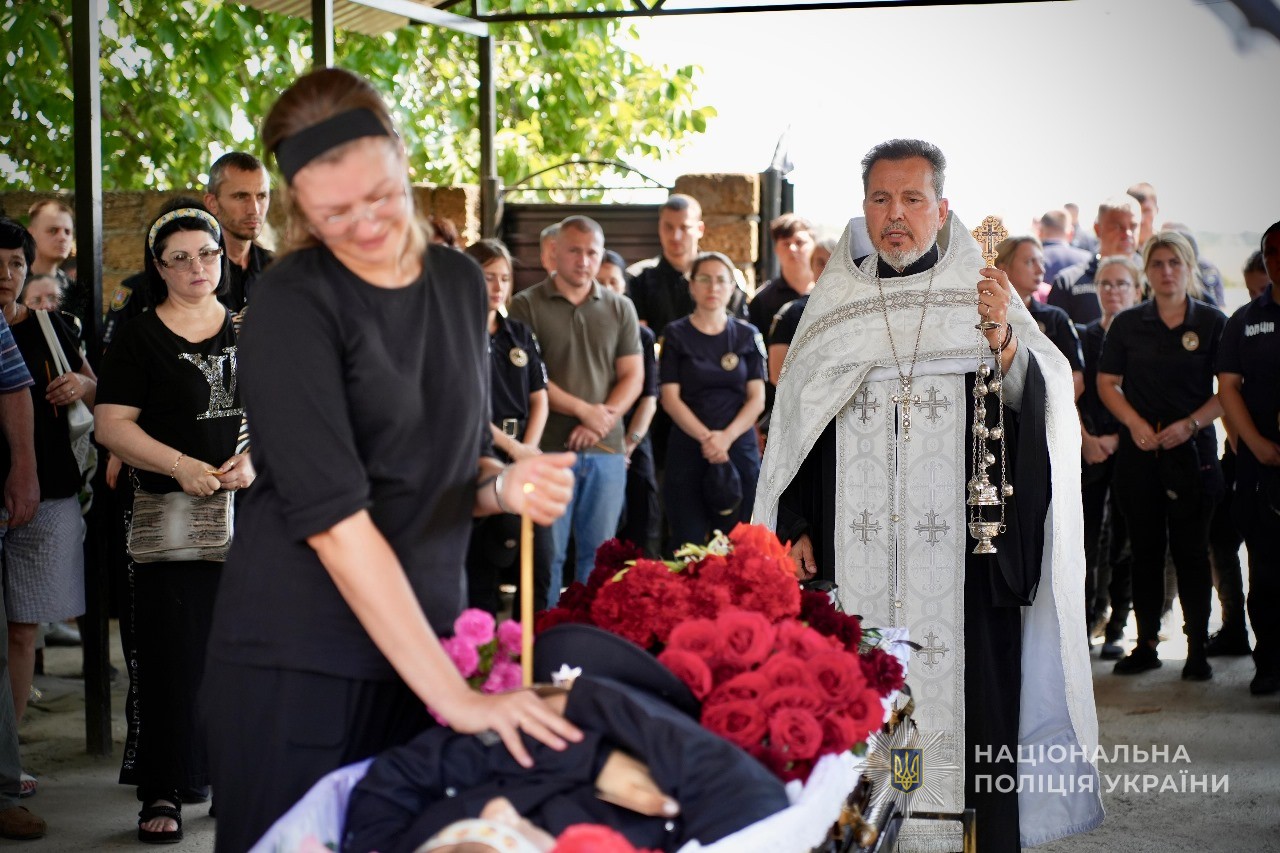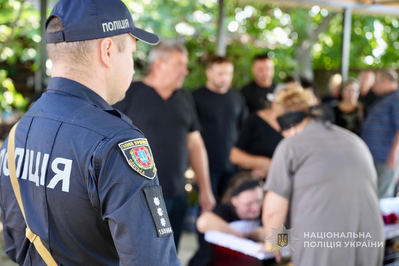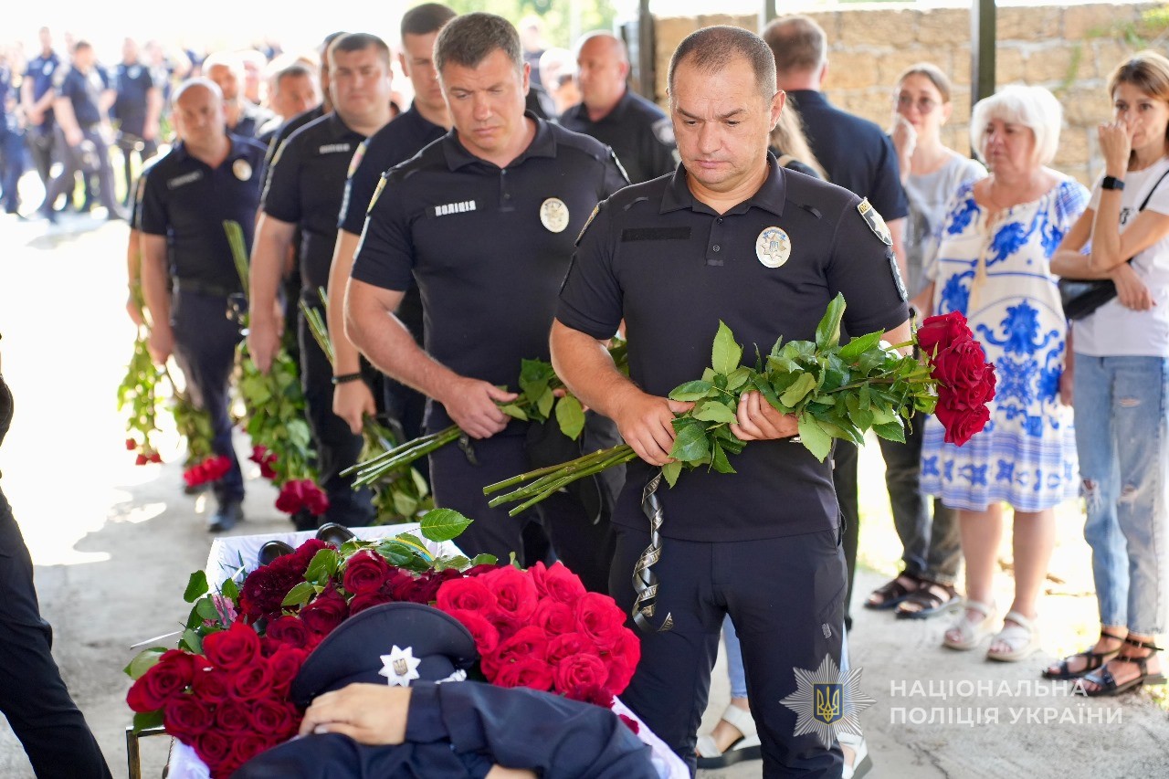 Церемонія прощання зібрала рідних, друзів, колег, а також керівництво поліції Одеської області.